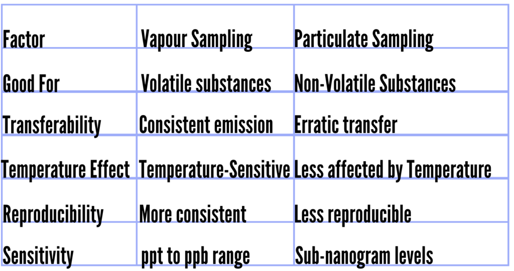 - High Volume Sampler (HVS): Used for large enclosures like cargo containers.